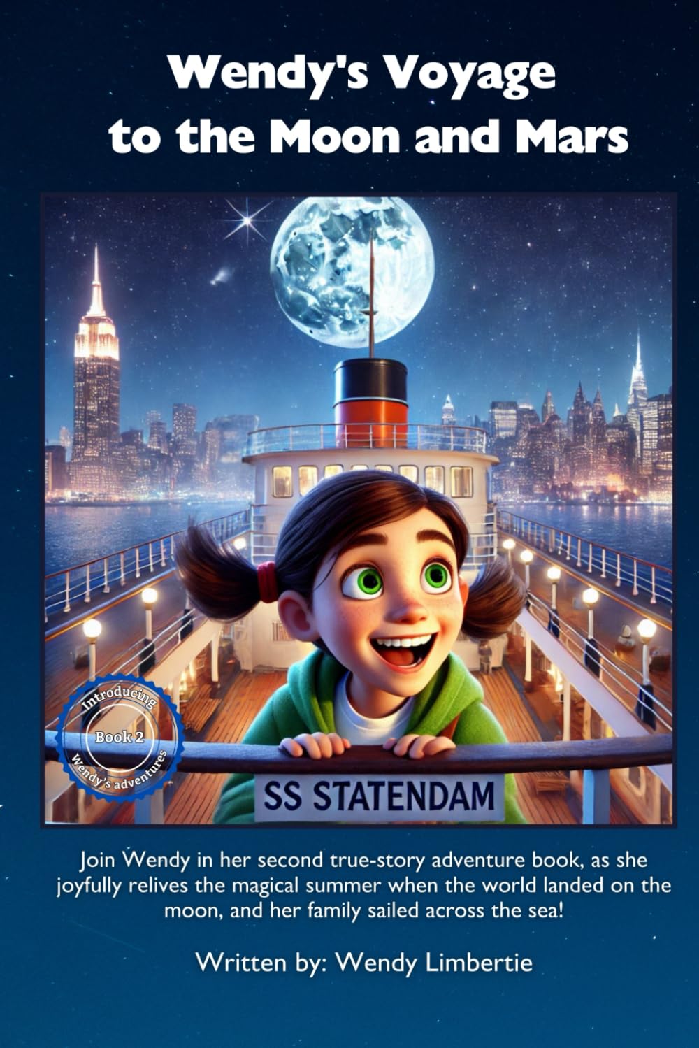 As the Statendam sails through the Atlantic, Wendy’s journey is as much about the wonder of space exploration as it is about family, freedom, and the small joys that make an adventure truly magical. Combining history, nostalgia, and whimsy, this delightful tale captures the spirit of a young girl’s voyage during a summer when the whole world looked to the stars.